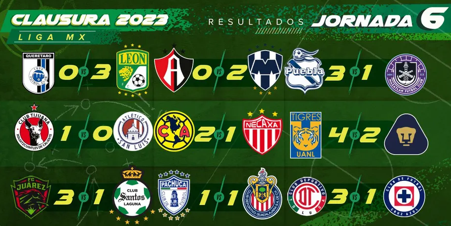 La Liga MX está llegando a la mitad de la fase regular del Clausura 2023 y tras la jornada 6 del certamen el liderato general cambió de dueño luego de un fin de semana de actividad apresurada y que arrancó desde el jueves.