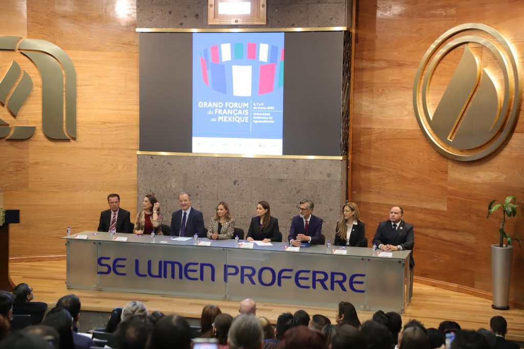 La gobernadora de Aguascalientes, Tere Jiménez, y el embajador de Francia en México, Jean-Pierre Asvazadourian, inauguraron el Grand Forum du Français Au Mexique que se realiza en esta ciudad con el objetivo de reflexionar sobre la situación de la enseñanza del francés en el sistema escolar público mexicano.