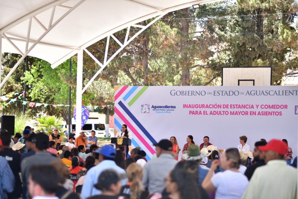 En gira de trabajo por el municipio de Asientos, la gobernadora Tere Jiménez inauguró una Estancia y un Comedor Comunitario para Adultos Mayores, con lo que se busca mejorar la calidad de vida de este importante sector de la población.