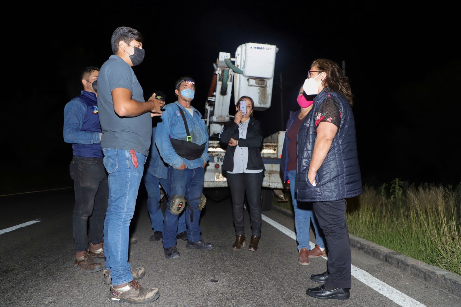 Acompañada por la secretaria de Servicios Públicos, Miriam Rodríguez Tiscareño; el director de Alumbrado Público, Francisco Javier Sánchez López; así como de los titulares de las distintas Delegaciones urbanas y rurales, se detectan y corrigen fallas para que la población transite por la vía pública con buena iluminación.