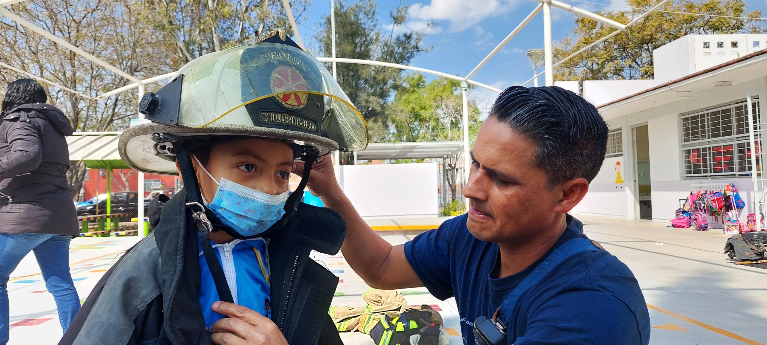 La Coordinación Municipal de Protección Civil de Aguascalientes puso en marcha el programa “Bombero en tu Escuela” en donde estos heroicos servidores públicos visitan instituciones educativas de nivel básico y ofrecen pláticas y exhibiciones de sus habilidades para evitar incendios y accidentes en casa, con el objetivo de impulsar la cultura de la prevención en niñas y niños.