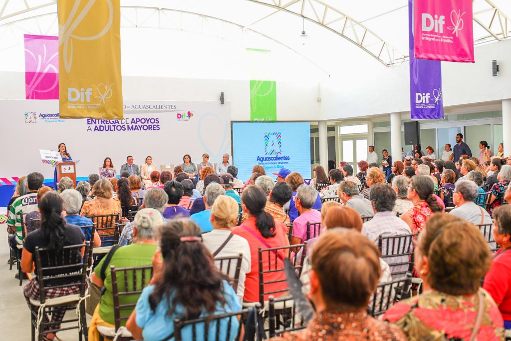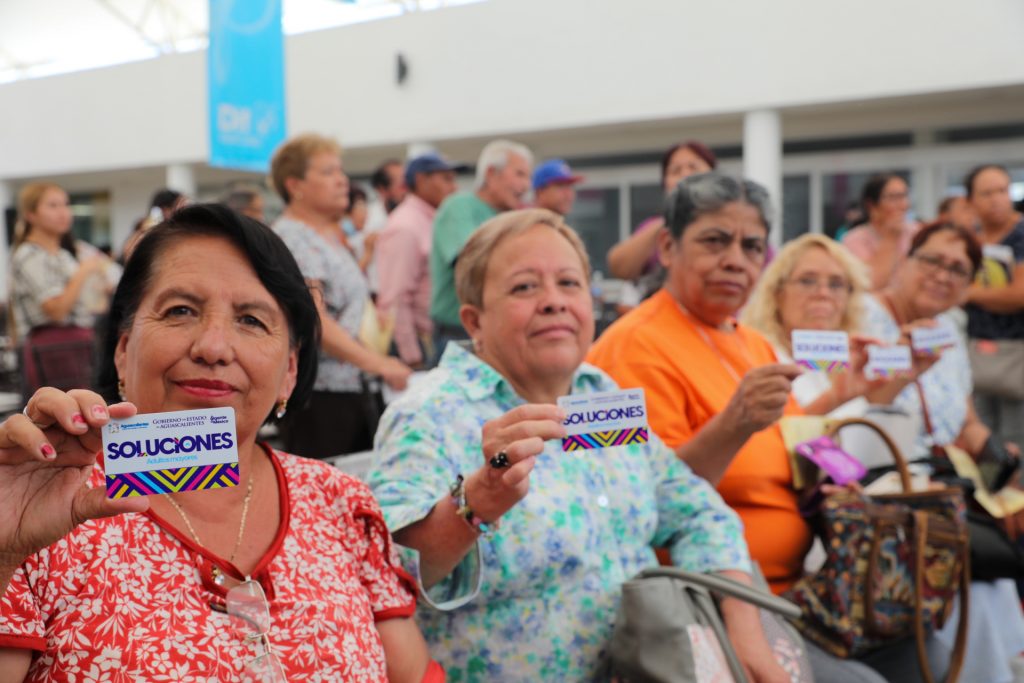 La gobernadora de Aguascalientes, Tere Jiménez, hizo entrega de tarjetas soluciones y apoyos alimenticios a 700 adultos mayores como parte de las acciones que su administración promueve en apoyo a este sector de la población.