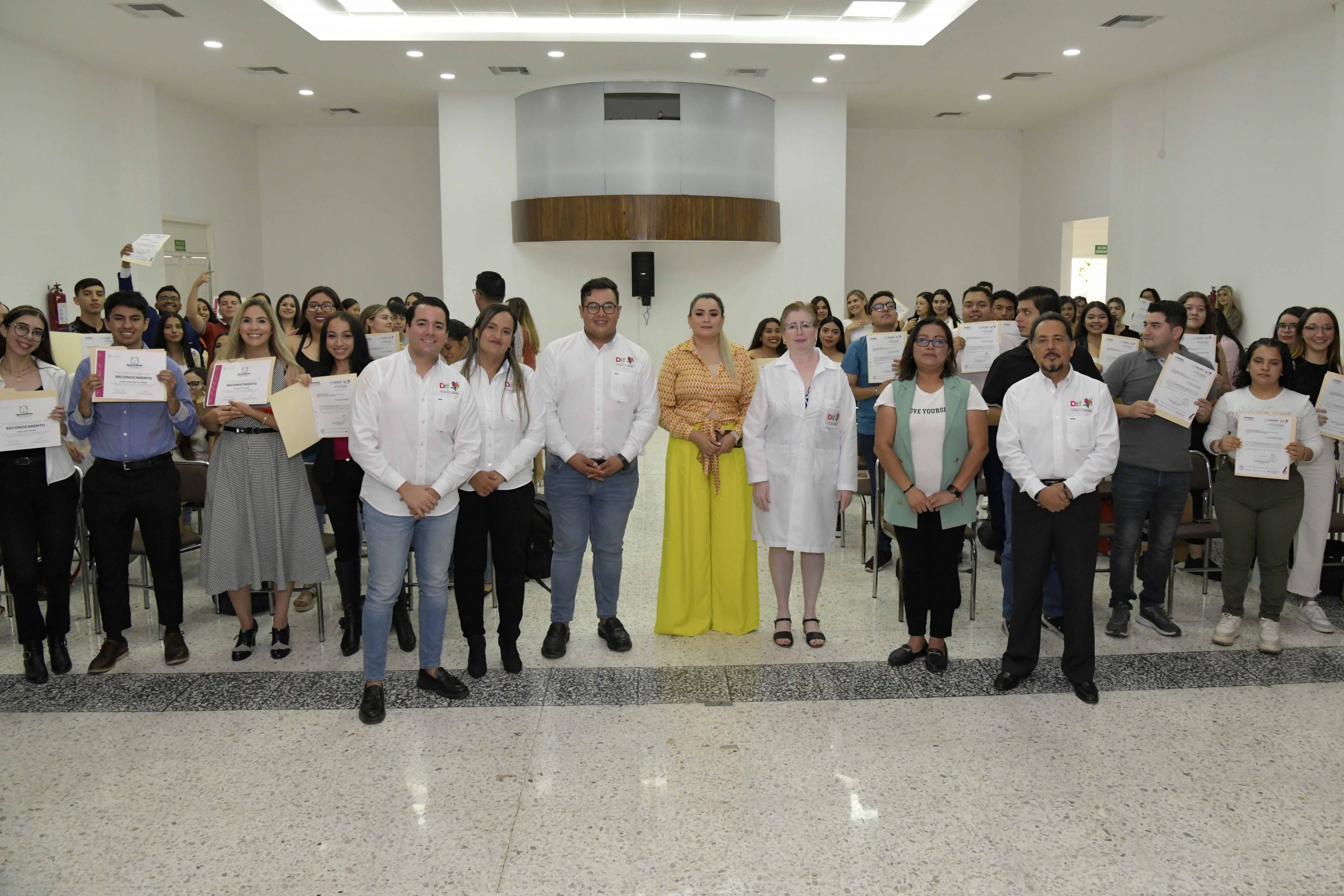 A través de la Dirección de Servicios Médicos del Sistema DIF Estatal, se entregaron constancias a 59 pasantes universitarios y 12 reconocimientos a los alumnos más destacados por haber concluido su servicio social en esta institución.