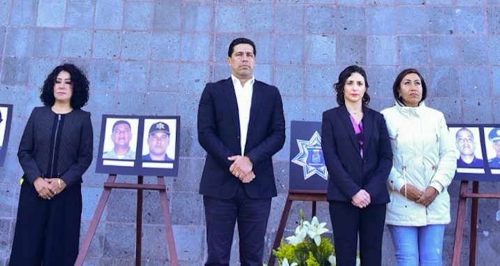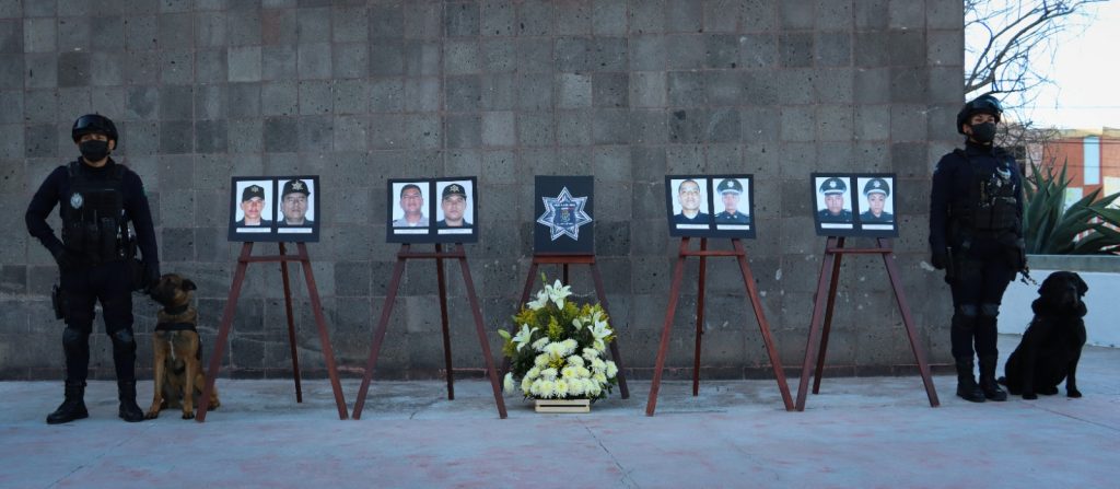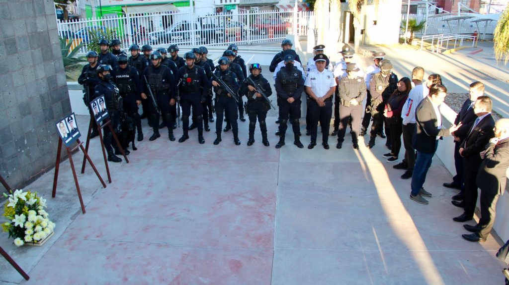 Durante la ceremonia se guardó un minuto de silencio y se rindió un breve homenaje al comandante Juan Navarro Rincón, así como a los suboficiales Eduardo Flores, Juan Rivera Molina y Genaro Sandoval Salas, de quienes se reconoció su honor, valor y entrega en beneficio de los habitantes del municipio capital, a 16 años de haber ofrendado su vida por proteger la de los demás, en el fatídico “jueves negro” del 15 de febrero del año 2007 registrado sobre Boulevard Juan Pablo II.