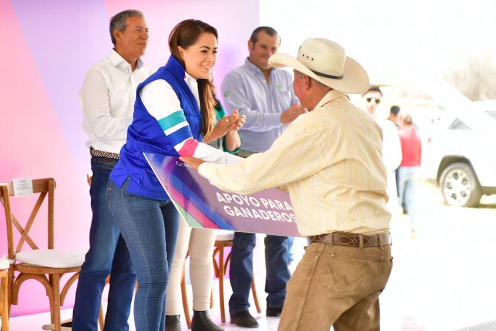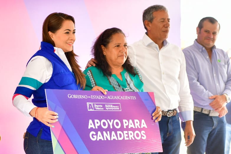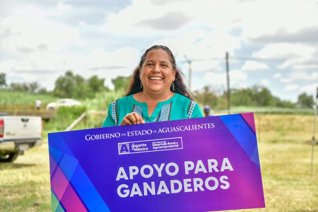 La gobernadora de Aguascalientes, Tere Jiménez, entregó forrajes y suplementos proteicos a pequeños productores ganaderos del estado para garantizar la buena alimentación de su ganado.