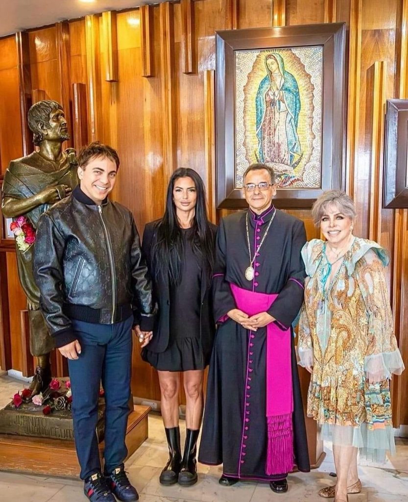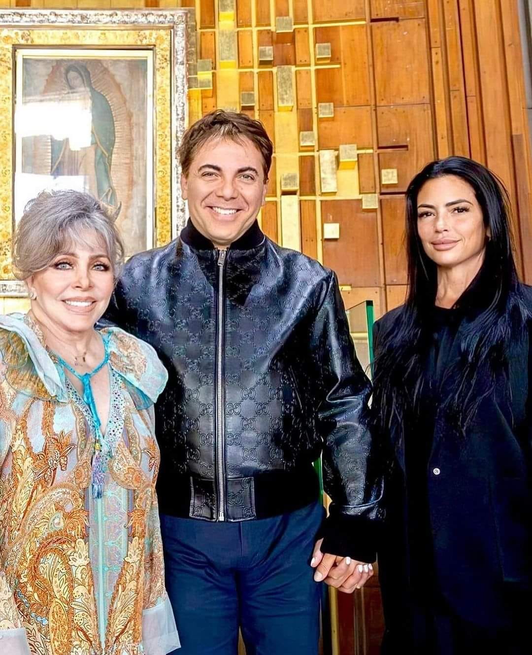 Verónica Castro anda más que feliz con la visita su hijo Cristian Castro y su novia Mariela, aquí visitando la basílica de Guadalupe !